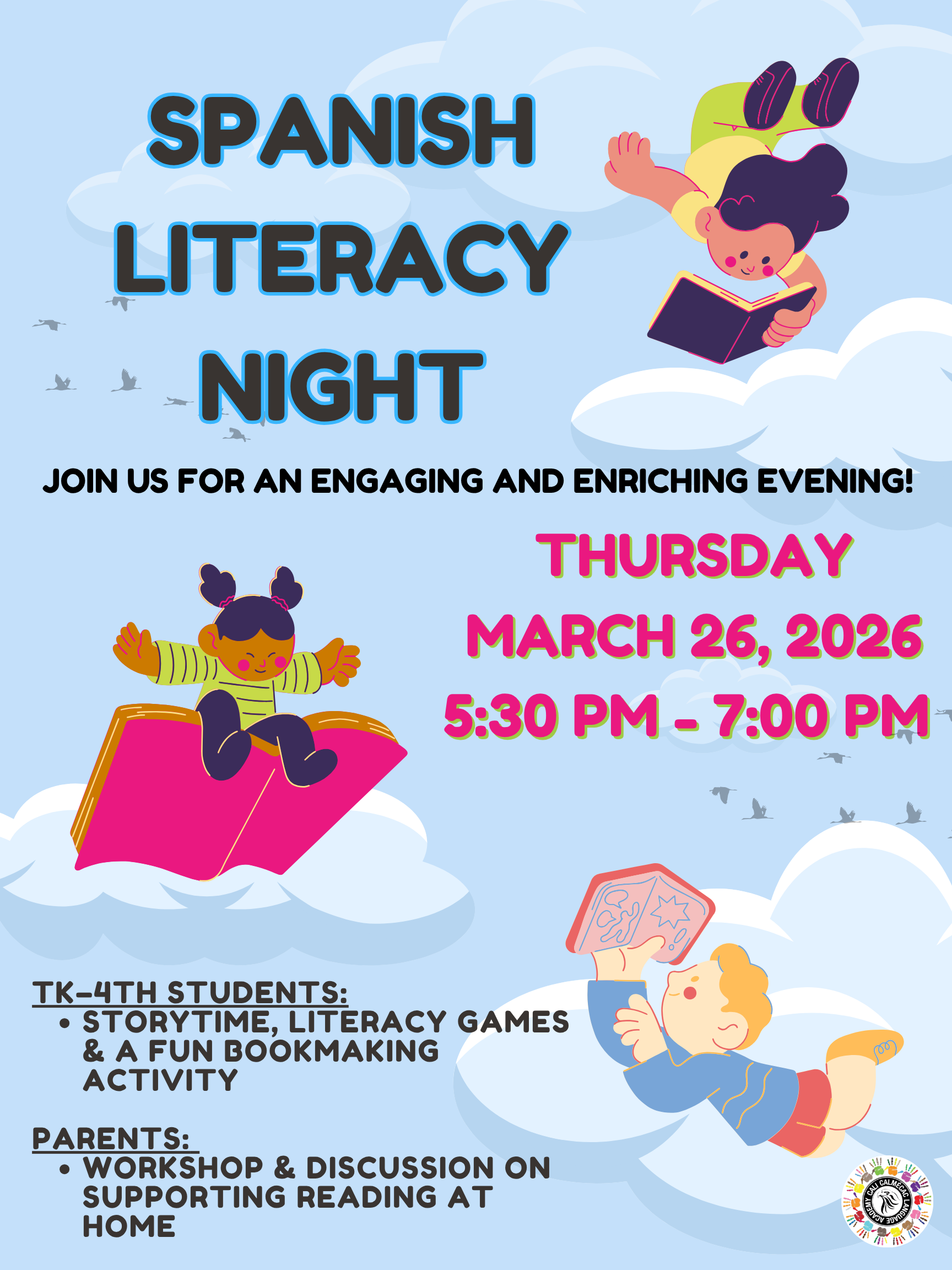 Students of Cali Calmécac will maximize their potential as biliterate, bilingual, cross-culturally competent learners and members of society via a rigorous 90/10 Two-Way Bilingual Immersion curriculum that prepares all students for post-secondary education, promotes cooperation, collaboration, critical thinking, creativity and social responsibility.