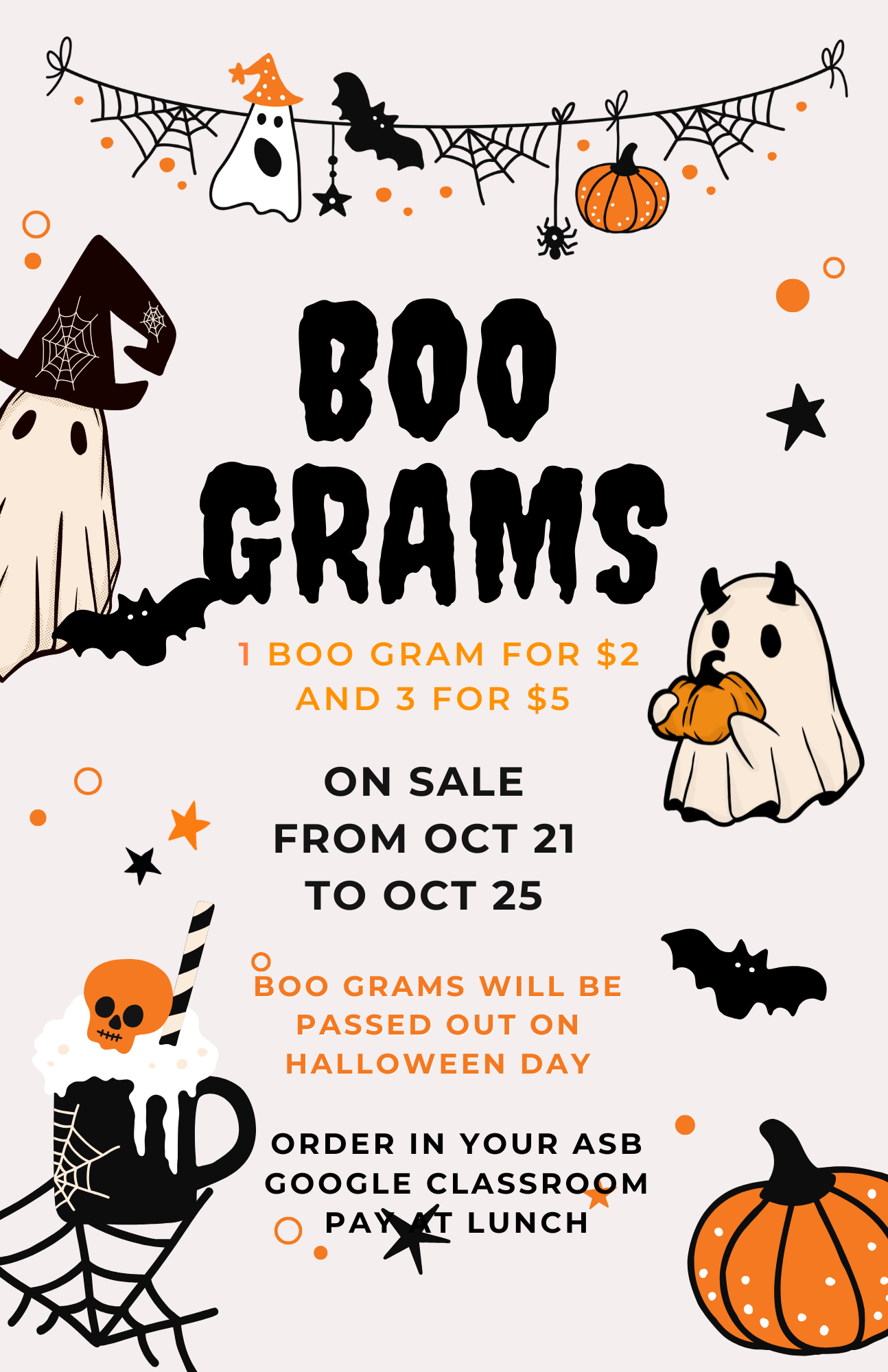 Dance admissions are still for sale this week, you won't be able to purchase at the dance. Boo grams are also for sale this week!