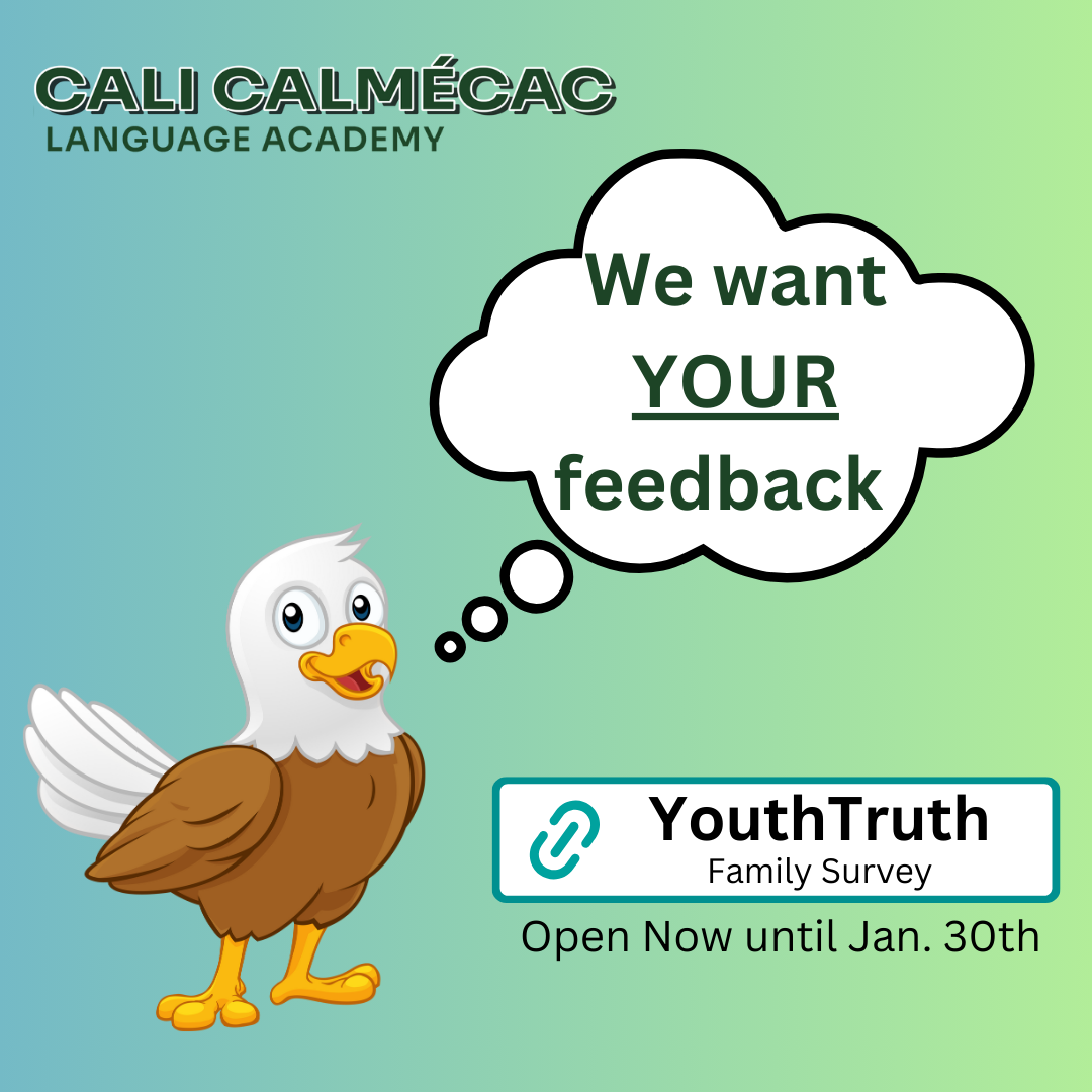 I am writing to ask for ~15 minutes of your time to complete an online survey that will help us improve your child’s school. We have asked YouthTruth – a nonprofit organization that supports hundreds of schools and districts across the country – to conduct a anonymous survey on our behalf.